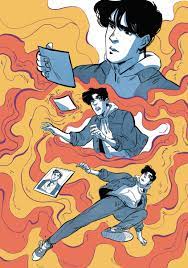 That was the draw. Okay, maybe superficial, but that crazy, busy, simple coloring of yellow, blue, and gray just called to me. Later I realized that there was another character on the bottom half of the page. I did not know that the story was about Dick Grayson before he was the superhero Robin, or Nightwing or any other form he took. This graphic novel is about the