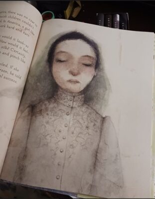 Mara Rockliff not only teaches us the history of Lane Bryant coming to be, but the history of fashion, the history of women, and the history of the country. We see how an immigrant girl from a small Jewish family followed a sister to America, worked in sweatshops, started to create her own clothing (never using a pattern), and started a trend when a client needed a dress that would expand with her during her pregnancy. She would later start her own business, with premade clothing, learning that one size does not fit all. Bryant would raise several children, marry twice and always stay current.