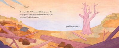 This is a story of being strong, being proud and standing up even when you want to sit down. The war in Syria is presented in a child friendly manner. This is done by the sweet, simple, but strong illustrations by Nez Riaz. The colors, lines, and ways presented make this book almost if this mother and daughter duo are off on a picnic. But when you see how war has harmed the Bana tree, then you realize the impact.