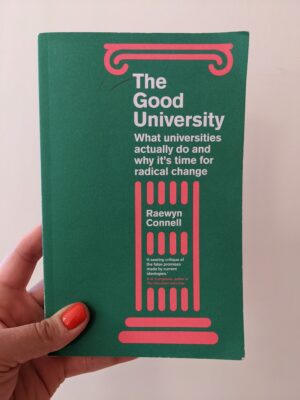 This book is extremely well-organized and well-researched. Connell starts with reminding us of what the research aspect of a university looks like – who does it, why it is done, and how it contributes to knowledge. She also looks at a larger question about what is truth – is it truth once it is a peer-reviewed journal? What if that journal is part of a system that essentially forces researchers to buy access to research, and looks at research through a very western lens? She then looks at learning and teaching, the other big component most of us think about when we think about universities.