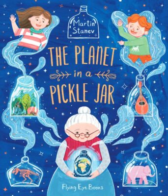 The Planet in a Pickle Jar almost has a “part one” and “part two” to it. You start off with the grandchildren of a grandmother saying their grandmother is dull, never laughs or talks until they show up. When they finally visit, they think her house is dull, the grandmother tells long tedious stories and things are boring. Of course, you see the artwork presenting everything as mysterious and boldly colored and overflowing with details. The second part is one day the grandmother is missing, the children go searching for her to find not only the grandmother, but a bold, beautiful world. And they realize what they grandmother was talking about. And they realize that like their grandmother, they need to try and save the beautiful planet/world they live in.