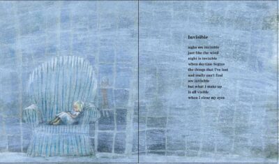 The poems have a nursery rhyme affect, tone, and style. None of them “jumped out at me” but they are all pleasant to read. It is even a book I would not mind reading again. And I would enjoy reading a few to a child as an anytime read or bedtime read. It is the illustrations that truly grabbed me. Not only does Marit Tornqvist create art that compliments and enhances the text but has a “life” of its own.