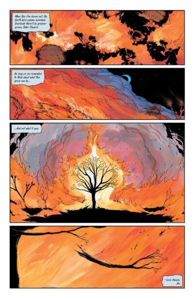 And the illustrations by V.V. Glass. What can I say? Other than they are traditional graphic novel illustrations, seriously dark, unless good times are happening or there is fire. Oh boy does fire love showing off its reds, yellows, and oranges! And while they are artistically interesting, setting the tone (whacky but letting you see “happy” vs. “confused” and/or “dark” times, they are also dark, even ugly to a point. They can be the make or break if you like the text. I mean, do they fit with what you think should be happening? But the text can do the same thing and turn you off to the illustrations.