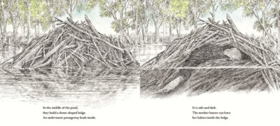 The publisher description says: introduce(s) beginning life science concepts such as life cycle, feeding habits, caring for young, and the wetlands ecosystem. An author’s note provides even more information at the end of the book. These are done in an accessible manner, and even someone not familiar with beavers can appreciate the events.