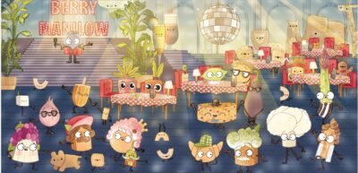 Now, you the adult reader know that things will work out. That Lady Pancake and Sir French Toast will save the refrigerator light, save the day, and they will all live happily ever after. But we have seen that story before. There was nothing new or fresh to the story. I think Funk has gone to the food pantry once too often and the novelty is spoiled. Maybe this is because I was never a huge fan to start with, or maybe because there are just a lot of anamorphic food books right now, but either way, it was not a hit for me. However, at the end there is a fun pun about a famous singer that I found amusing.