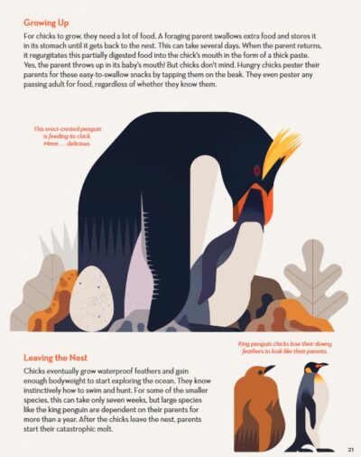 Passionate about Penguins (About Animals) is a really cool book. The text by Owen Davey shows that they know their subject, know how to present it to keep your attention on said subject and knows how to make you want to know more. As an adult I was learning things and wanting to save all sorts of facts and was laughing about some of the more humorous elements. And there were POOP facts! If you have read any of my reviews you know that I was as happy as a, well, penguin building a poop nest!
