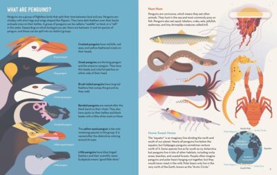 Everything from the tiny fairy penguin to the large emperor penguin, the kind of foods they eat, their creepy mouths, the way and why of swimming, to even how we can help protect them is included.