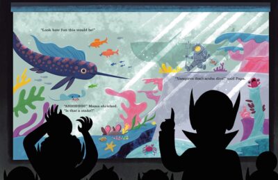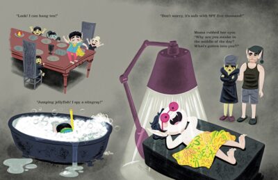 Okay, I admit, Vampire Vacation is a little cheesy. But it is a fun and adorable cheesy! The idea of “trying something new” has been done before, but the twist is that this time Fang (a young, sassy vampire boy) wants his parents to try something new. Which is, not to take the same old family trip to Transylvania (even though the brochure promises it never gets old, Fang disagrees). Even with the several false starts in the attempts by Fang in Laura Lavoie’s picture book, Fang does whatever he can to try and convince his parents they need a change. They need to surf, have fun in the sun and do things that his friends do during the summer. But is that possible? Can he convince his family to take a chance?