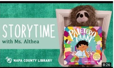 The second title I found read by this librarian was Paletero Man. This colorfully illustrated ditty is created by Lucky Diaz and illustrated by Micah Player. The publisher description says that the book is based on the Lucky Band’s song of the same name. I was not aware of the song, but the story is a sweet, almost like “the house that Jack built” theme with the young boy running along the streets of his community, trying to find the Paletero Man, who will have all his favorite flavors and colors. The world comes to life with multiple details and colors popping of the page. While there is not a moral, the theme of friends comes alive. And having someone read aloud helped with the Spanish pronunciations. Translation from Carmen Tafolla.