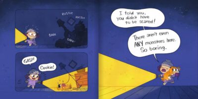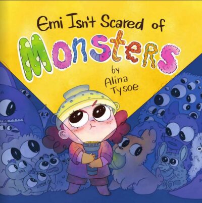 The adorably goofy images of Tysoe come alive on the page as Emi and Cookie hunt the monsters. With a clever somewhat twist to the ending, our little, brave monster hunter has herself an adventure for sure. The colors are bright, popping and the details just enough to move the action along. The big eyes of the characters are adorable and a little creepy. And perfect for the story. They are full of expressions and just delightful.