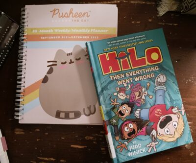 Hilo Volume Five: Then Everything Went Wrong by Judd Winick is a mix of the above. This volume is a “middle of the story” story. This is where more background about our hero Hilo and his friends is given and you are on the way to the top of the climax, but not there yet. We see how the friends can fight some new villains, get new friends, and must deal with Earth’s Government. There are also surprises and typical “boy” humor (though one of the girls is doing the armpit farting…). And even though this book is not the best in the series, there is enough that makes me want to know WHAT THE SAM HOUSTON IS GOING ON! So off to books six, seven, and eight.