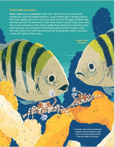 In other words, some of the smallest creatures in the world must be clever to eat and not be eaten. Woolcock talks about how some have spring-loaded legs, some poisonous barbs and others hitch rides on other species. Some even use “pom-poms” to “box” away predators and to grab food.