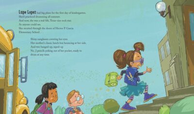 E. Charlton-Trujillo and Pat Zietlow Miller’s story is about a modern girl with modern ideas, feelings, hopes and dreams. The tone is as flashy as the illustrations by Joe Cepeda. The text is simple with Spanish words scattered among it. The illustrations are far from simple. While not overly crowded, they are busy and take on a life of their own.