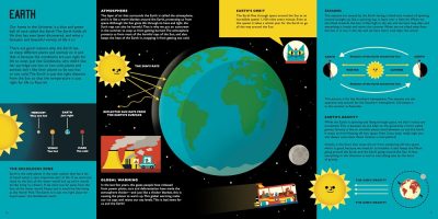 Professor Astro Cat’s Frontiers of Space (This Is a Reissue of a Previous Edition) has much in the way of scientific facts which are seriously presented but are paired with very cartoon illustrations. The text in Dominic Walliman’s book is long, dense, and not for all readers. The serious tone of the wording would work for a more serious reader/learner, but the cartoon art might turn them off. Of course, the student might be drawn to the cartoons and that will keep their attention with the text. And of course, for some the two pairings will be the only way to go.