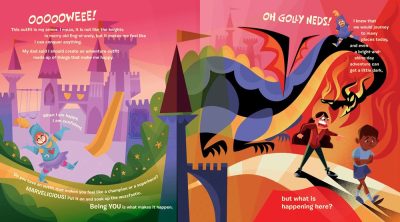 The character Nina is loud, bold, proud, and makes up fun words to explain their larger-than-life feelings. They grab their trusty backpack with a few of their favorite tings and off they go to show us kindness. And that ranges from cleaning up your park, to planting trees, to saying hello, to being silly and entertaining friends to so much more. She also shows how loving yourself and other is a form of kindness. We see all types of people. The colors of people, the types of people, and the hues of it all just burst loudly off the page. The only small issue I have with the story overall is that there is an almost out of the blue unkind moment. It stopped the flow of the story and was not a great fit in my personal opinion. And though I know it is a kids book, at the very least I expected the image on the bottom to say, Be Kind, Damn it! (Or something more grown up? Maybe if West does an adult version…?)