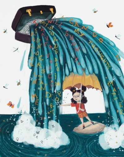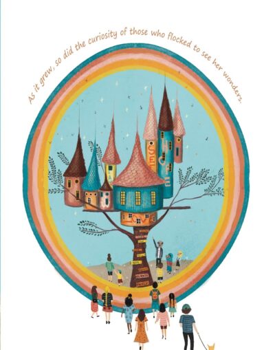 Lucy McLoughlin has added illustrations to the text that are both separate from and complimentary to it. They are solid but not “edgy.” The images are soft, sweet, but have a stability to them. The color palette is mixed, the details busy, but also fun. You read them as much as the text.