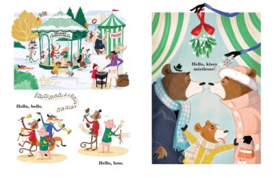 Hello, Tree by Alistair Heim is a holiday book through and through. It has holiday images on the cover, the story is a rhyming text about all the wonderful holiday things seen in the town. The text itself is terribly short, and