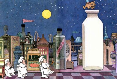 It’s a little peculiar that Sendak felt the need to have the main character get naked multiple times and show him in all his glory so much, but that’s as far as I’ll go. If people can be okay with the Nevermind album cover, this should be nothing in comparison. It’s a silly little story about night bakers trying to bake a cake, almost baking him into a cake, him fashioning a plane out of bread, and flying it up to a milk bottle to get them the milk they need to finish the cake they’re making for in the morning. It’s written for children; kids won’t care if they see an illustrated dingaling. They’re liable to strip all their own clothes off and run around just as naked as Mickey does here at a moment’s notice. And reading anything more into it is simply outlandish. Some people need to get a life, simple as that.