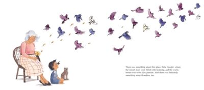 Julia goes to stay with her grandmother for the first time without her parents. And there is Something about Grandma and something about her house, the area she lives, the town and more. The things Julia does with her grandmother are different. They have sugar bread that is brought to them in a basket, that the lady delivery it places on her head. There are different smells, colors and hot chocolate can cure homesickness. Her grandmother knows when Julia has picked limes from the garden, she can see the future when Julia rides her bike too fast, and she has good stories, memories, and Julia fits just right in her arms for snuggles.
