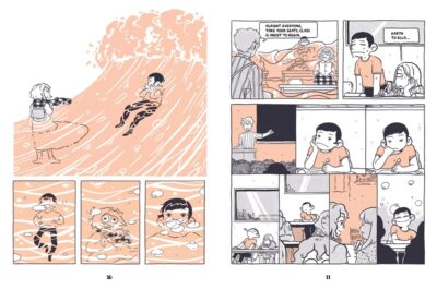 With elements of Heartstopper’s humor, and the edge of Giant Days by John Allison and Lissa Treiman Thieves by Lucie Bryon is a slightly darker-but-still-light comedy for ages at least 14 and up. Funky illustrations that make me envious of the clothing the girls wear (even the every day things) and I love how Ella’s style is all over the place, and she is very proud of who she is. (And I love how her ears are not very realistic, but just freaking adorable). There are hints of sex (shoulders showing above the blankets, lots of kissing) and casual smoking, but all done for moving the story along, not for gratuitousness. I would have liked to have seen more diverse characters with size, but the personalities of everyone is a hoot.