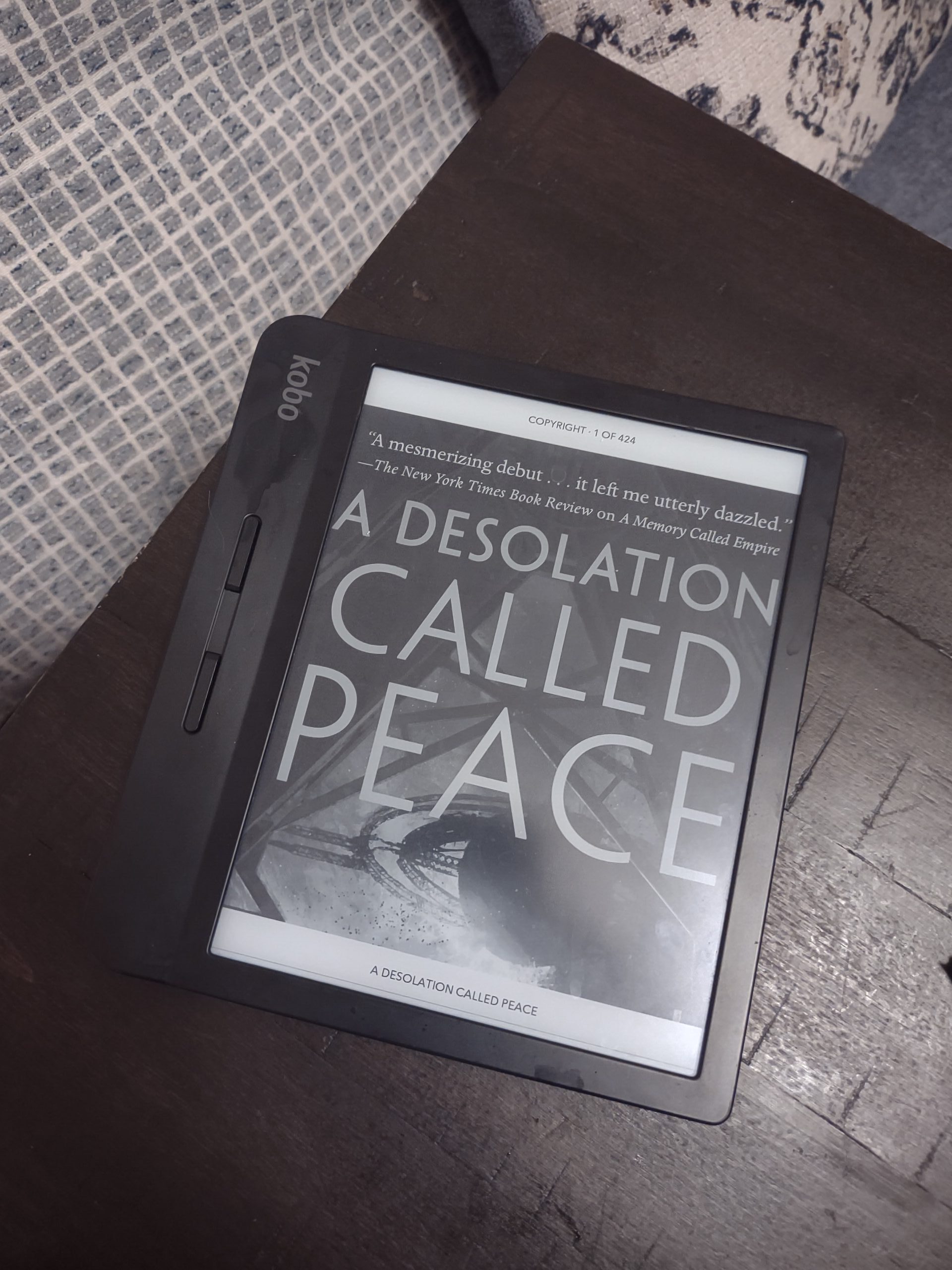 A Desolation Called Peace starts off a few months after the messy business of A Memory Called Empire. Mahit Dzamare is back on Lsel Station and feeling less than comfortable. She may have secured the Station’s independence, but the alien threat that was always boiling in the background of the last book still stands. She also has two copies of Yskander’s—the previous diplomat’s——imageno in her head, which has upset some local politicians enough to put a target on her back.