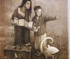 The Arrival by Shaun Tan is gorgeously illustrated in surreal realistic images. Limited only by the imagination of the reader, this book is both beautiful and ugly due to the reasons people left their countries for this new one. Immigration is shown in a powerful and yet, soft, manner. This is because love is used as the driving factor behind the people we meet and Tan’s illustrations are blurry, but mostly understandable. Still, things are not perfect and can go into an almost abstract manner. All types of immigrants fill the city our main character leaves to. Several people he meets has a story to tell him, as he struggles to find his way. These are told in fantastical imagery where “dragons” loom over the city or men using flames to burn all in sight. There is a sweet ending.