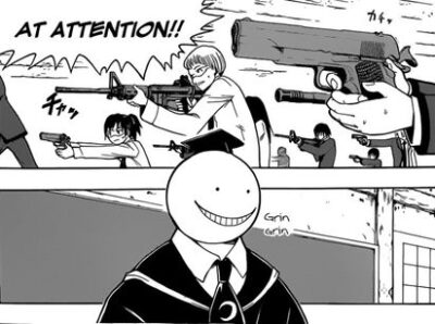 Much like with One-Punch Man, I’m confused about how they could milk so much content out of the concept. Looking online, it appears there are 21 volumes of this particular series, and I don’t know how that can possibly not feel drawn out with the set-up we have here. One day, a weird octopus-like creature destroys part of the moon, leaving it now forever a crescent, and promises to destroy the earth within a year if he’s not assassinated first. The only ones with a proper opportunity to assassinate him? His students. Yup, he agrees to teach Class E, the students others have given up on, and does so rather earnestly. There’s an expectation that they’ll all try to assassinate him, and he even gives them pointers, but mostly he seems to be there out of a real desire to teach these kids something.