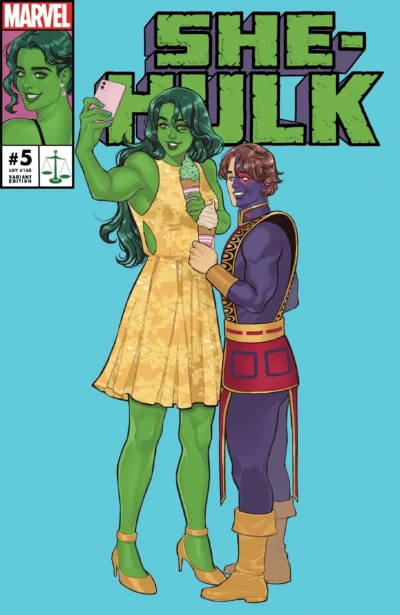 I guess the arrival of the She-Hulk television series must’ve been a boon for Rainbow Rowell’s comic series too, since both of the local comic book stores I’ve been to are sold out of #6. Even online retailers are out of stock, except for third-party re-sellers who are trying to make an extra profit. However, in my search for issue #6, I discovered I’d neglected to get issue #5 due to all the hubbub surrounding our big move. I managed to find what I guess is the variant cover of it (which I prefer) in one of my searches for #6 and was confused because I legitimately thought I’d already bought and read #5. I was stood there googling about it for minutes while my fiancee sat in the car, and then they had a $5 minimum for credit cards, so I had to spend even longer finding something worth buying to get my total up. That was way harder than it should’ve been. Maybe if I played card games it would’ve been easier. Or if I read more comics and/or didn’t care about buying something considerably more expensive, like a full volume of something else.
