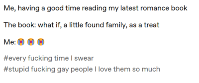 The building sense of trust between these two, along with their struggles to open up (along with their discovery that they really like it when they are mean to me) made this a delight to read. Romance and getting to trust someone isn’t always a linear journey, and there can be mistakes along the way, but Katia Rose’s characterisation never had me mad at the characters, always empathetic to their struggles. It was the kind of dream to read that I now have two different tabs of me trying to figure out which local booksellers have any of Rose’s other books in stock so I can follow up (Catch and Cradle or Stop and Stare seem like good next steps).