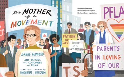 Rob Sanders in The Mother of a Movement: Jeanne Manford: Ally, Activist, and Co-Found of PFLAG tells a story of what mothers could and can do. The text is terrible simple, just so you can see how different everyone is, but they pack a wallop It does not shy away from the issues (Manford’s son Morty is beaten, and you see him in the hospital, but it is just him with a bandage over his eyes), but things are done in a child friendly, accessible manner.