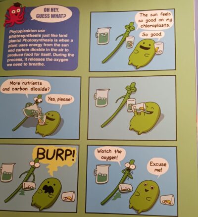 Everything about the book is loud, fun and to top it off, informational. This might be a fun book to (not) read before the summer beach trip (judge your child, it does mention sharks, but they are nice (mostly) sharks). And there is the line about “a million years” before something with happen and krill mentions they would be “really old” (so sensitive child might not be your audience).