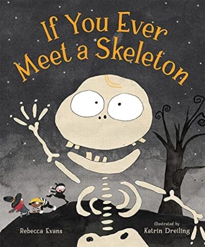 I might have read If You Meet a Skelton before. I do not remember (yet it feels familiar). Therefore, this was my first time reading it. Rebecca Evans has a sweet, simple story that would work well in a large board book format. It is cute as a traditional hardcover, but this book can be read to almost all ages. And Katrin Dreiling’s art has some quirks that make it a pleasure for most ages as well. The cover reminds me of The Rugrats, but the inside just silly Halloween fun. There could be one or two of the creatures a little spookier than some kids are okay with, but overall, there is nothing overly “too much.” Our narrator tells you all the fun things you can say, do and enjoy when you have the pleasure of meeting a skeleton. Sometimes they can look spooky (I mean, that cover tells you really all you need to know), but they just like hanging out with their buddies like you! A fun rhyming Halloween picture book with simple, but cute illustrations. A nice treat for your trick-or-treater!