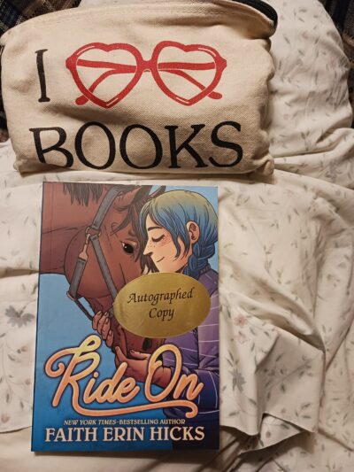Ride On by Faith Erin Hicks is another fun story that is pure Hicks: Awesome! The only reason I do not give it a 5 is because I want more!!! It is a 4.5 as I love the illustrations. If you are into horses and friendship stories this is a great fit. Even if you are not into horses this is still a great fit. The characters in this graphic novel create bonds in ways all friends do, by finding common ground. But, of course, sometimes that ground is shaky while getting there. Kooky illustrations (which you should read closely as there are some fun gems), and relatable characters, kids will enjoy the ride.