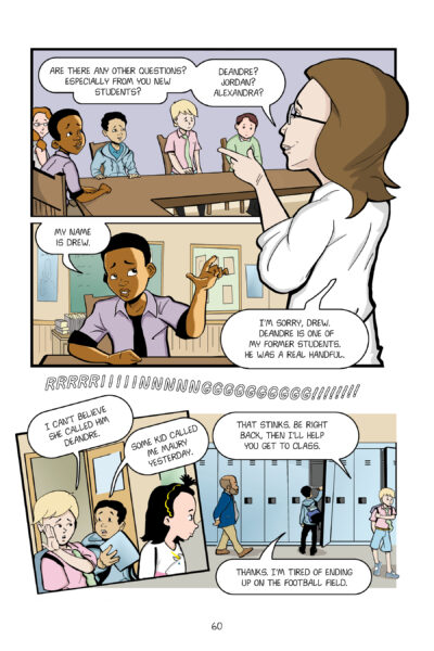 You see, I liked the experience, I liked the exposure, I liked finding this book. But I am not sure I liked the book. I am not sure if Character X should have done “that thing.” I am not sure if Character Y really would act that way. And was it needed to have that storyline? And maybe the characters needed to be fleshed out a tad more. I am wondering about them as individuals, not just the group school situation. There is potential. And there is a much going on that will allow for discussion and that is probably what draws me to this story. One of the pieces that I found interesting is the idea of a New Kid. Jordan is a New Kid in school. There are new kids in school. And finally in the end, (semi-spoiler) Jordan becomes a New Kid, taking pieces of Before Jordan and Now Jordan and leaving room for Next Jordan. I also liked the Chinese Food metaphor his grandfather gives. There is also a piece about how Jordan and his friend Drew assume something about white classmate, reversing the stereotypes and prejudices that have been aimed at them. These points are both humorously and strongly presented.