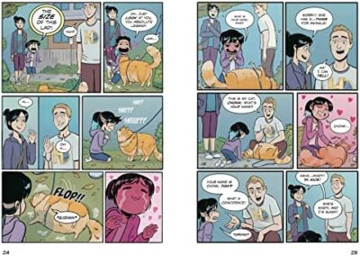 Now the bumps are several fold. First, there was a story plot mentioned that was confusing to me as I was thinking why is the narrator not explaining? (Oh, you see the big two on the spine there…? Yup this is book two). And then there was the fact I was reading this in an online reader copy and pages/panels were missing. But I was able to get the idea of things. And there was that maybe the narrator is not the best person in the world. Okay, she is dealing with a lot, but they could have made her a little more aware of things.