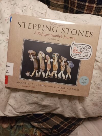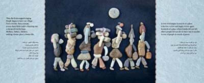 A young narrator in prose poetic language tells us of their journey from innocent at home to their journey as a refugee. The stone characters are both soft and hard, and telling most of all. The poems, the flow of things is in a child voice, but one who has experience. The little details (getting a new doll) are as important as the why they left (the bombings). And Badr literally gives us a piece of his home by using stones as his medium.