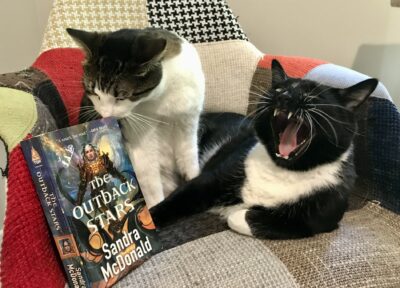 So then the story jumps back and forth between regular plot – smuggling, corruption in the ranks, a universe-changing discovery that they decide not to tell anybody about, figuring out a possible culprit for the previous ship’s disaster – and Jodenny and Terry pining for each other silently. It’s nonsense! They hardly speak to each other, and spend most of their time trying to out-surly everyone around them. It would be one thing if the crush had grown organically throughout the book as they worked together to figure out all the other stuff going on, but it just felt like an editor went back through after the book was written and said “Hey, why don’t you add some romance?” and poor McDonald just had to add in some extra paragraphs to make it work.