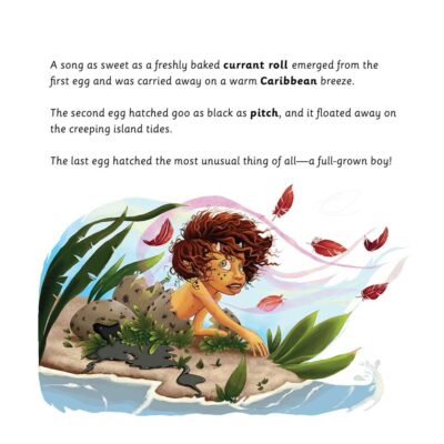 Overall, the illustrations are fun, boldly colored, and not fluffy, but are not serious either. They are perfect for the story and are detailed well. I did have two questions that were not completely answered (who the fantastical creatures are who are said to be the child’s parents, and why are there three eggs and what are the other two things that hatch from them), but that does not take away from the book itself.