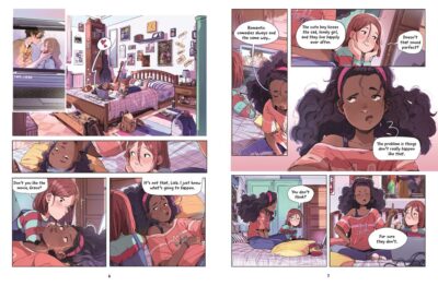 And while this graphic novel series by BeKa and Maya is aimed at ages 10 and up, it feels like the themes should be for older kids. Yet, unfortunately, coming of age has no “start date” just when you start it. Know your reader as this is a “girly book” for girls who like friendship stories. Adults might enjoy, but over 14 years old I’m thinking will find it too young. The artwork continues the pop, bubbly feeling of being in junior high and girl story. Nice, bright imagery is on each page. You know what you are getting yourself into.