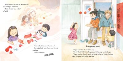 The second book (the first was a tasty treat about dim sum) was Chloe’s Lunar New Year. Here we leave the hustle and bustle of a restaurant behind and Lily Lamotte takes us into the family home. Here, Chloe is excited for the reunion dinner where her family will join. Some aunts and uncles and a special guess are around the table. And we see how the food is prepared, what is special to each person and finally how mixing cultures just enriches things even more.