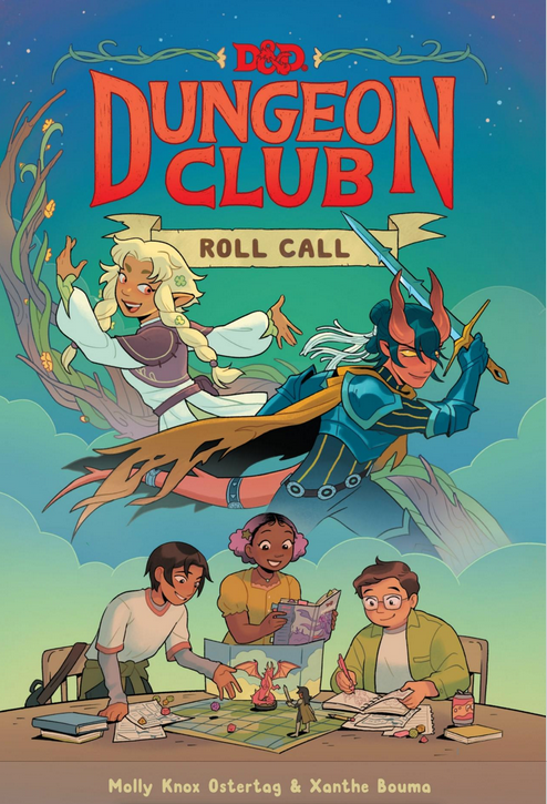 Xanthe Bouma’s art is very clear and expressive, and the coloring by Amelia Allore is vibrant and evocative. I enjoyed the premium feel of the hardcover, and I liked the cute surprise under the dust jacket! All in all, a fun read and recommended for adults or kids who love D&D or are generally nerdy and shy.