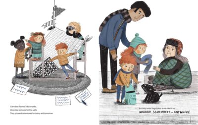 An afterwards ties the story with factual information on the situation, along with an author note, where we are introduced to the phrase unhoused children.