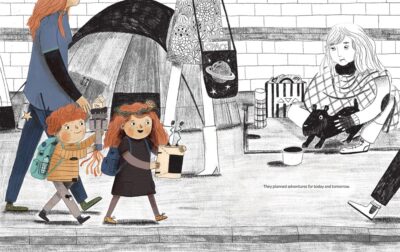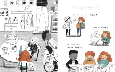 A Story of Two Children Thrust Into Homelessness and Uncertain Housing Situations. They show how two children are made to live in “uncertain housing situations.” Sometimes they are in shelters, hotels, waiting in lines, and finally able to find a more permanent situation. The story is not autobiographical, but Lippert’s own life inspired some of the feelings the children have.