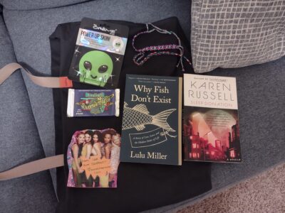 I know I am a bit of a pain when it comes to the book exchange because I don’t really leave much detail as to what to get me—decisions are hard! But I love everything here from the two new authors that I have never read before, the extraterrestrial-themed cards and mask, the Spice Girls card(!) And the friendship bracelets! (And they did they put me in mind of a certain someone, was that deliberate?)
