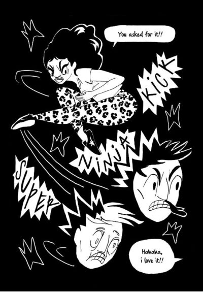 “Constance, a modern, young illustrator, takes revenge for the thousands of attacks suffered daily by women with a comic of her own, titled The Amazing Camel Toe, celebrating the adventures of an anti-macho vigilante in tight, panther leggings”
