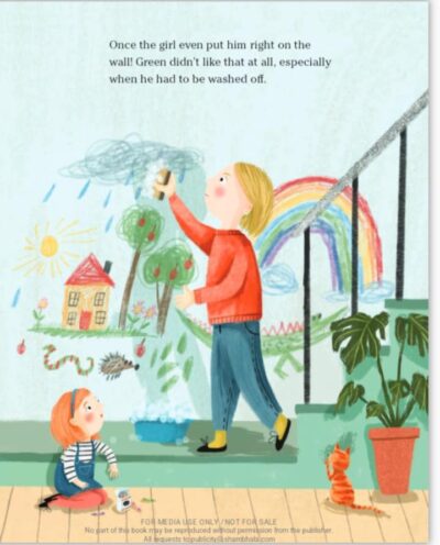 When a young girl gets a brand-new box of crayons, the adventures begin. But one crayon, Green, is the one that we follow. This is her favorite color, and we see how the many green things come into play (and drawing) as she grows. Not only does she have fun and is artistic but learns lessons too. Such as we might get our paintings praised if on the paper, but on the wall not so much. And to have patience as during the autumn months we do not need to use Green as much.