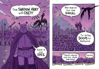 Dan Abdo and Jason Patterson are creating a Girl Power book that is for all readers (if you like offbeat “boy humor” (though I was waiting for the toot joke, but only got a few burps). The colors our overly bold and the details minimal to get the point across. And be it going down The Chute on a cookie sheet, or cooking up food in CHAR (the magic cooking pot) there is fun and adventure for all.