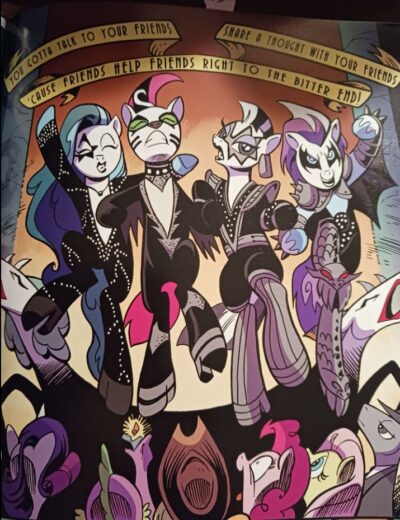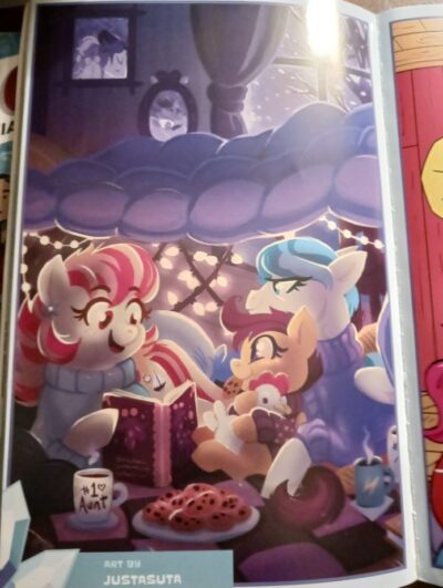Andry Price’s (and others) illustrations are right in the Pony World of cute, funky, and fun. I would like to hear the accent of two characters (one seems to be a bit of a Gilligan of Gilligan’s Island character but with a stereotyped “Swedish accent.” and Rockhoof, a pony of mythology is either a Thor-like Norse character (he has a shovel not hammer) or Scottish) as the illustrations do not bring that across, but it was not a huge issue. There are no real surprises to the art, but that is what makes them good as you know what you are getting into. These are Today’s Ponies and you know what to expect from therm.