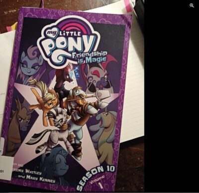 I was not totally into My Little Ponies toys and cartoons as a kid, but I had my share and watched the shows/movies. As an adult, I have gotten back into them as my nephew (in his wonderful oddness of finding things that appeal to his sense of the world) has found them (he likes the music and colors mostly) and we have something we can share (though I am learning a lot about Frozen, superheroes and Five Nights of Freddie, too). I find the graphic novels (first to read, then share). They are light but My Little Pony: Friendship Is Magic: Season 10 Volume one really hits home with modern themes. Adults will understand the idea of “oops my bad I was a kid” friendship woes, as will the older reader, but it is the child who is just reading the illustrations that might not be completely into things.
