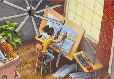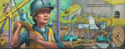 When you have a dream, you dream it. But to make that dream come true, someone will need to build it. We see how the men and women of construction, plumbing and more bring to life the plans of architects, engineers, and designers in Someone Builds the Dream. Each part of the overall picture is important and needed, but Lisa Wheeler shows us tht without the person to twist a wrench, or move a plank to a certain spot, the finished project would still be a dream on paper.